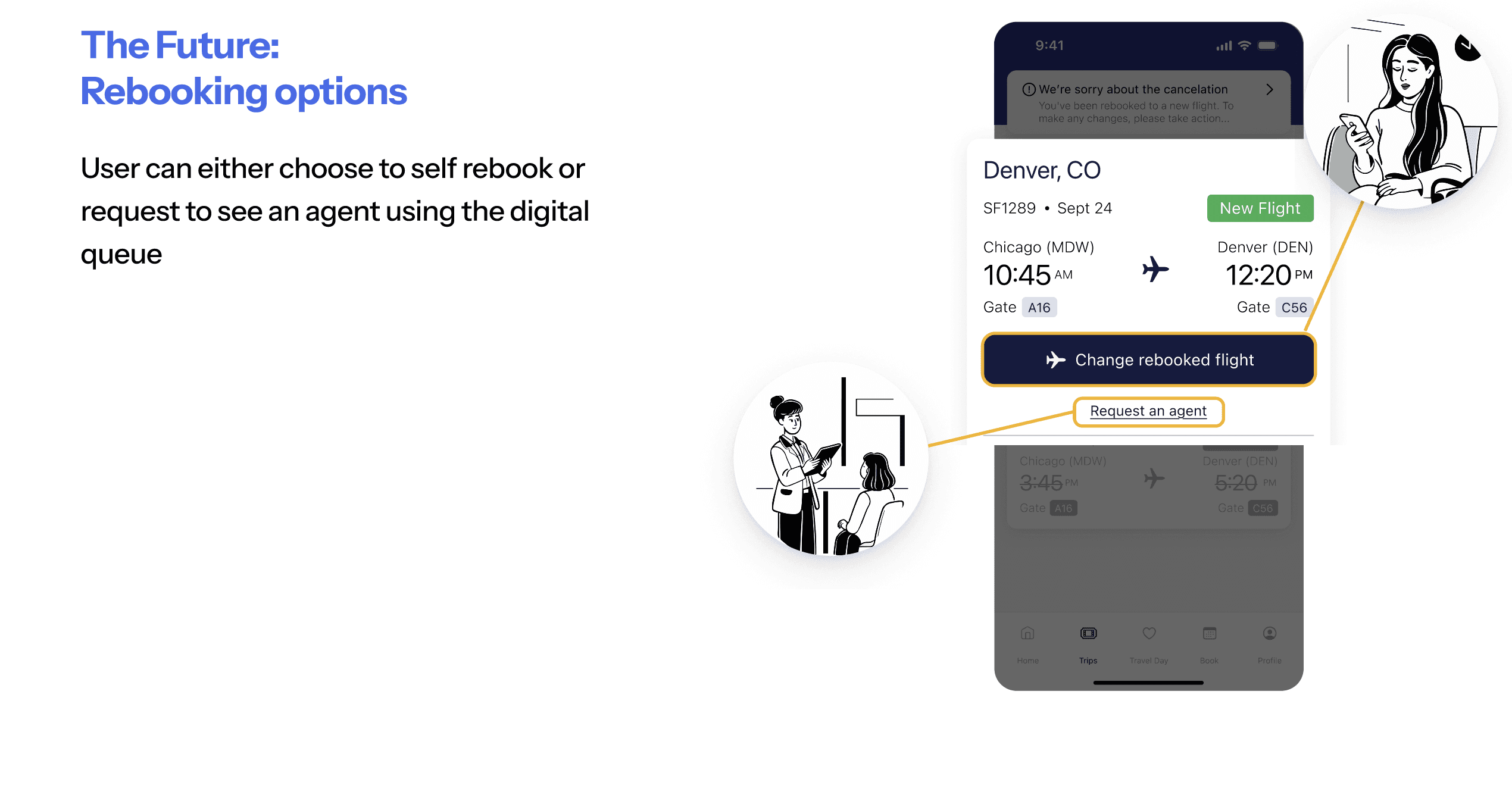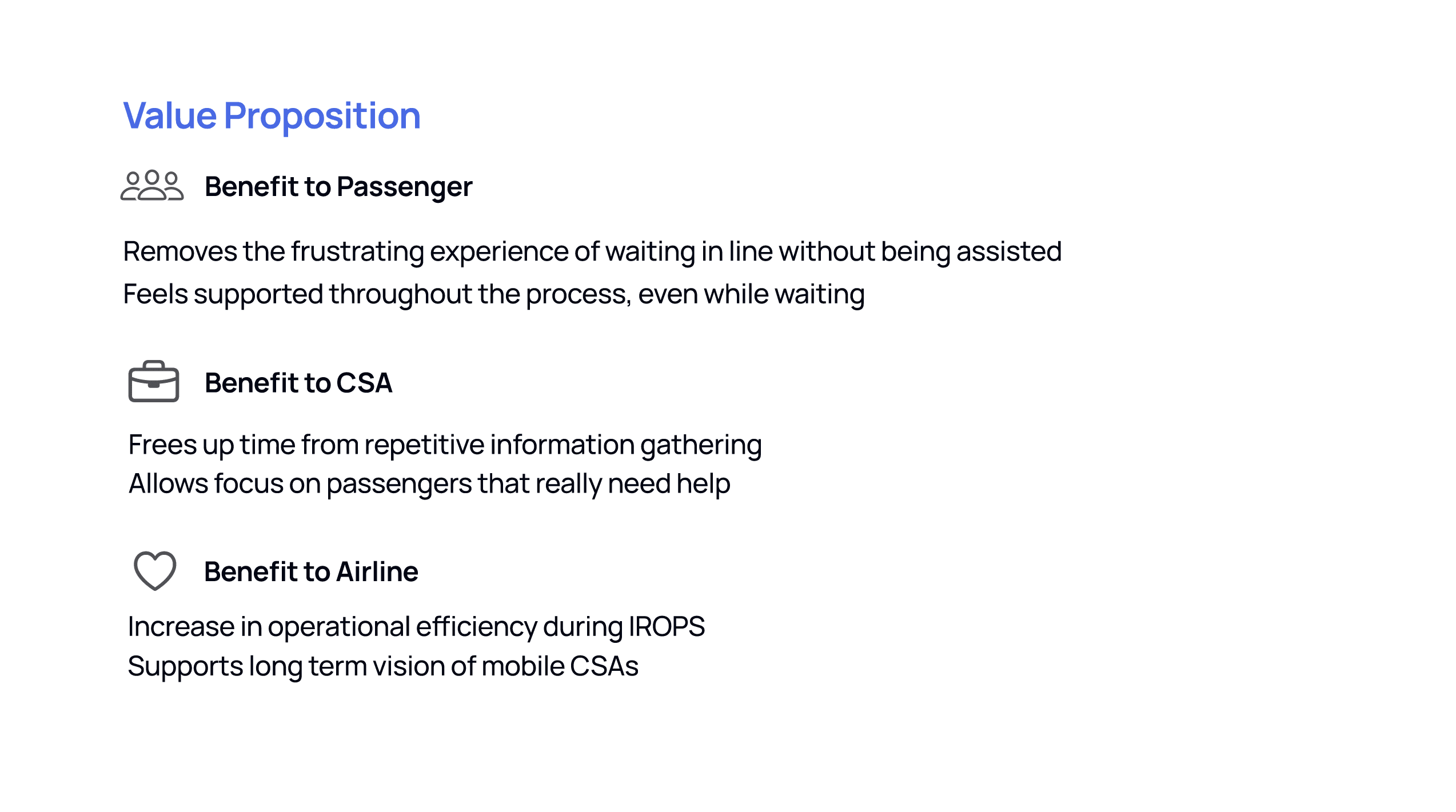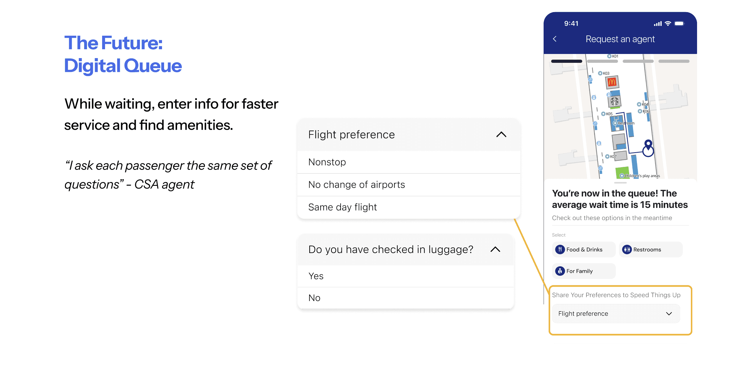 We are focusing on the GATE area—where travelers have completed their TSA check-ins and they are waiting to get on the plane. However, many things can happen during this phase—fight gets cancelled, reschedules, special help needed, etc. How can we better help travelers communicate and let CSA agents better assist travelers more effectively?